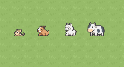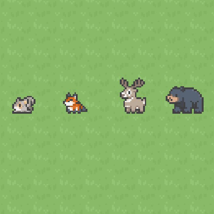 - December 07, 2024 by VectoRaith#sprite, #animals, #game asset, #update, #sideviewThe first update for this asset pack is now available! New sprite size added : 24x24 px for medium-sized animals New animals added : Alpaca, chipmunk, and cow (see screenshot!) New variants added: Alp... Continue reading