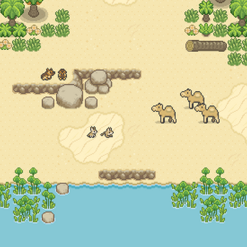 ⚠️ v1.5: Cave Biome fauna is now available! New cliff texture (sedimentary rock) for Desert Biome is now available! A whole bunch new tiles is now available to bypass previous versions combinatory limit! RPG Maker autotile support is now available! - See the devlog now!